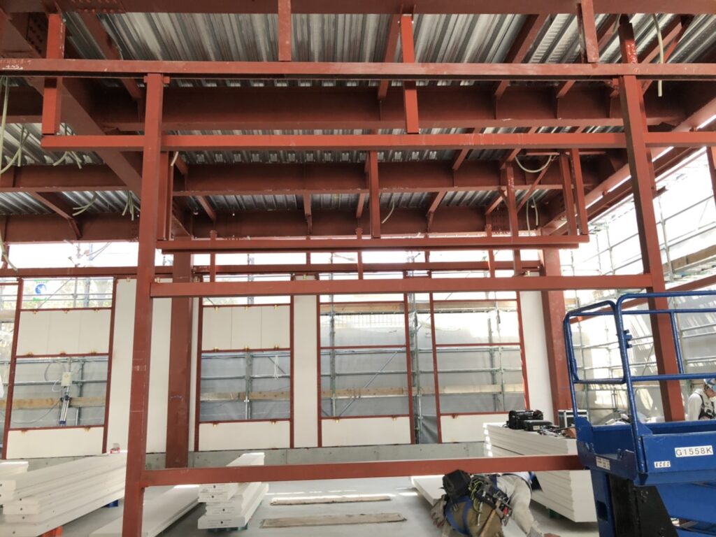 那義建設では、ビル・工場・商業施設・倉庫の新設、改修、補修、増築にともなう鉄骨工事や鍛冶・溶接工事に対応しております。現場には弊社以外の業者さまも多く携わりますので、工事全体がスムーズに進むよう配慮して作業に取り組んでおります。